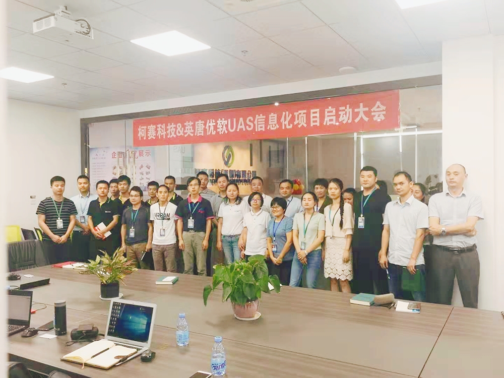 為全力推進(jìn)公司UAS項(xiàng)目建設(shè),確保UAS項(xiàng)目按計(jì)劃有序開(kāi)展;2019年9月25日,柯賽科技&英唐優(yōu)軟UAS項(xiàng)目啟動(dòng)大會(huì)在柯賽科技總部隆重召開(kāi)??沦惪萍肩娍?、各部門(mén)負(fù)責(zé)人及項(xiàng)目組成員共同見(jiàn)證這個(gè)重要時(shí)刻